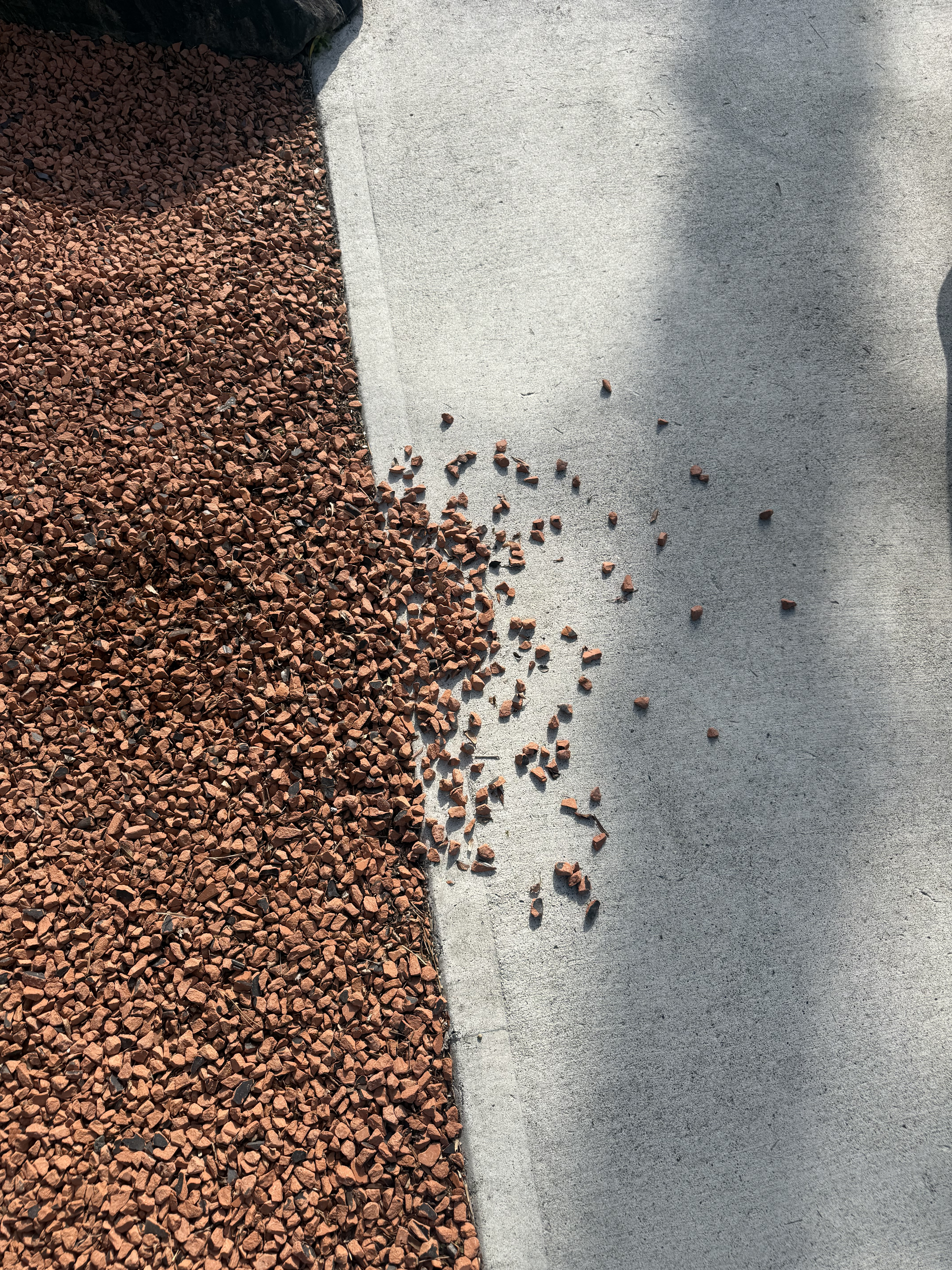 駐車場まわりの砂利って、気づくとコンクリートの上に出てきてしまうことがある。