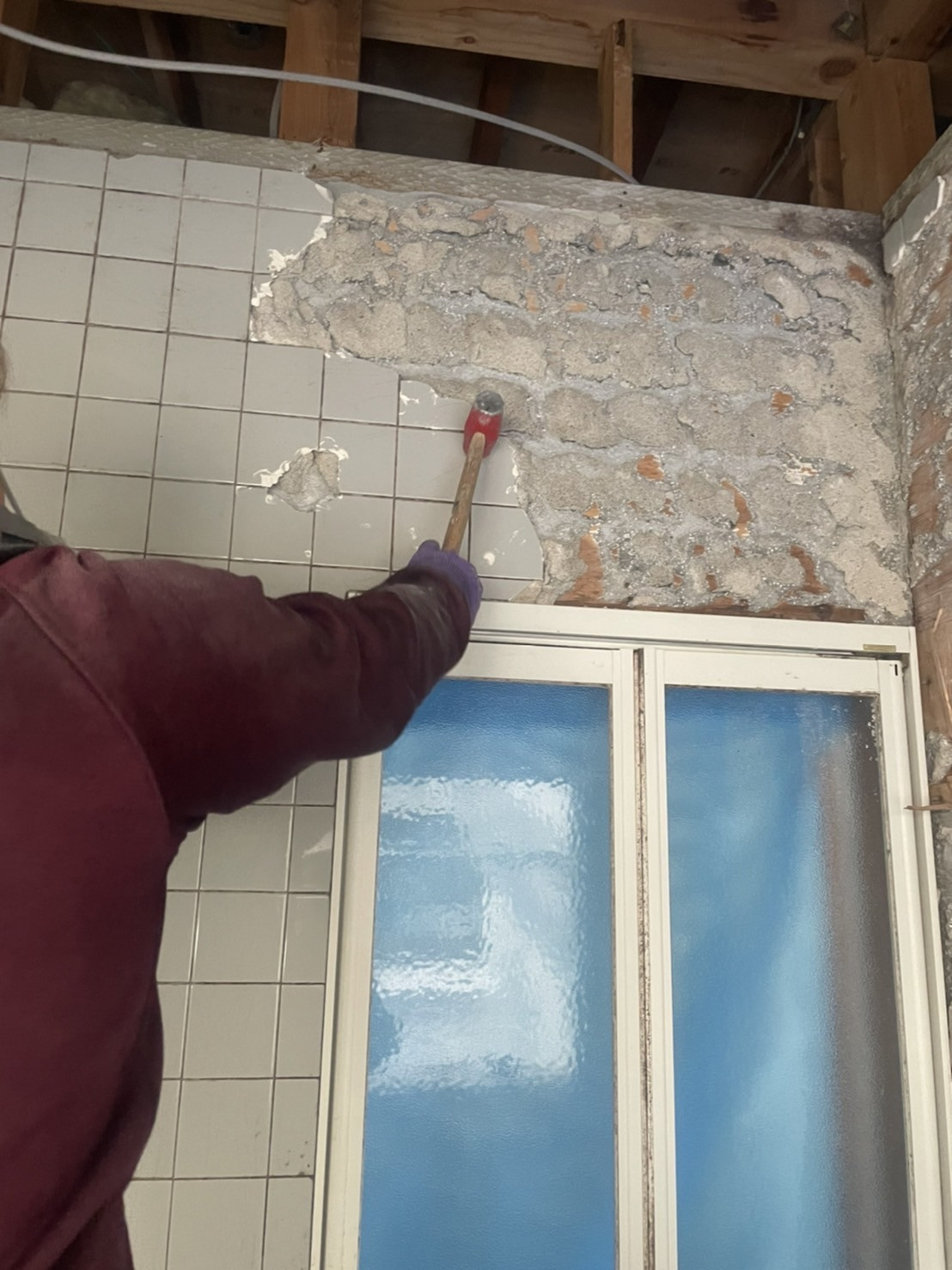 タイルや下地を壊していくと、普段は見えない部分の状態もよく分かります。