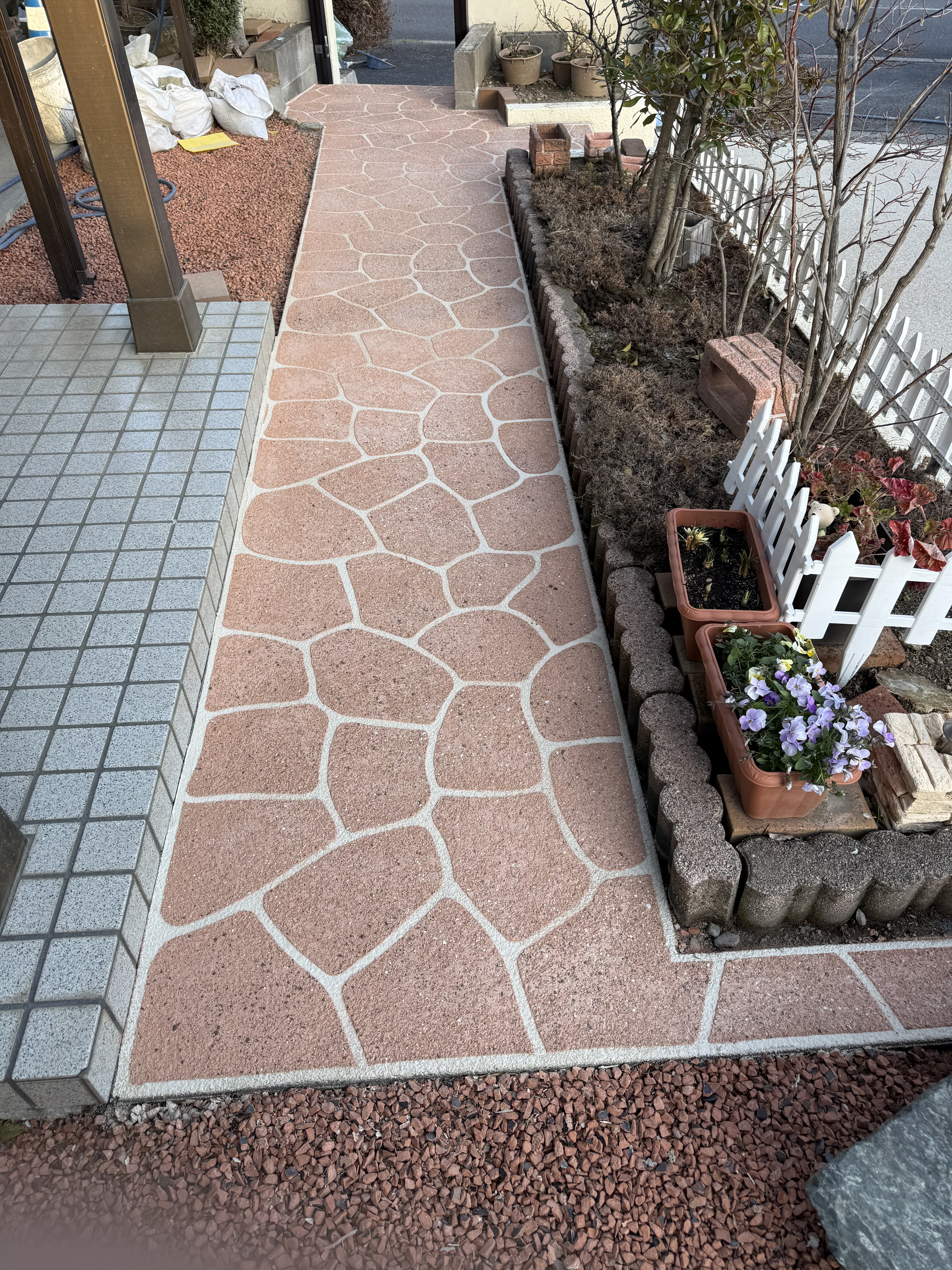 砂利が動かないように固定する工事を行いました。
