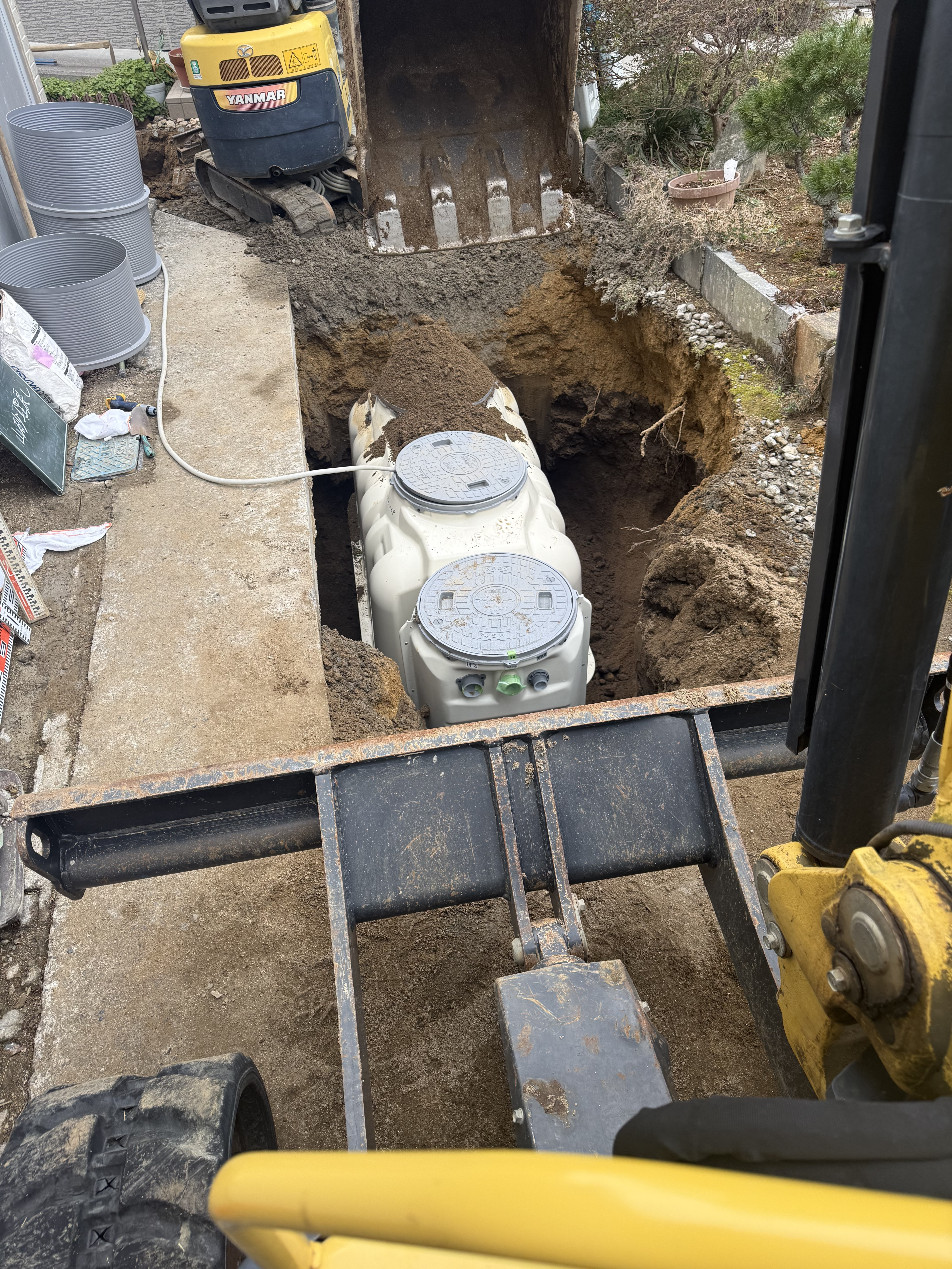 これから配管接続、埋戻し、転圧へと工程を進めていきます。